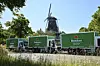 Heineken-lastebiler i Nederland med bevisst feilstavede logoer på et markedsføringsbilde offentliggjort i forbindelse med selskapets 150-årsdag i 2023.