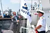 CEO Bent Martini heiser flagget på Havila Kystruten ombord på Havila Polaris. TIl høyre, Kaptein Kurt Harald Nærbø.